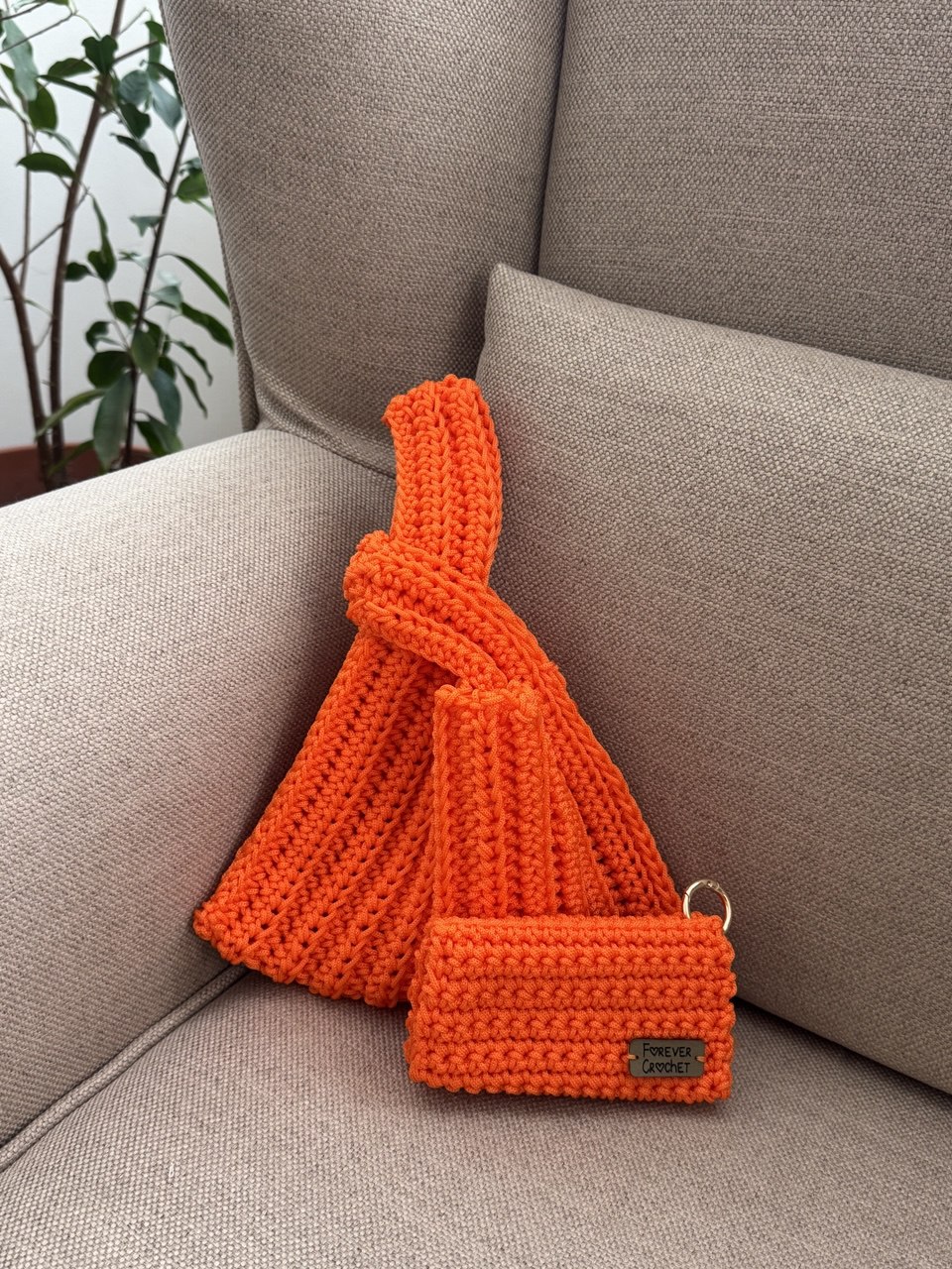 Borsa da polso, realizzata interamente a mano con cordino arancione