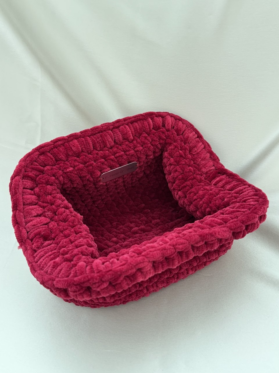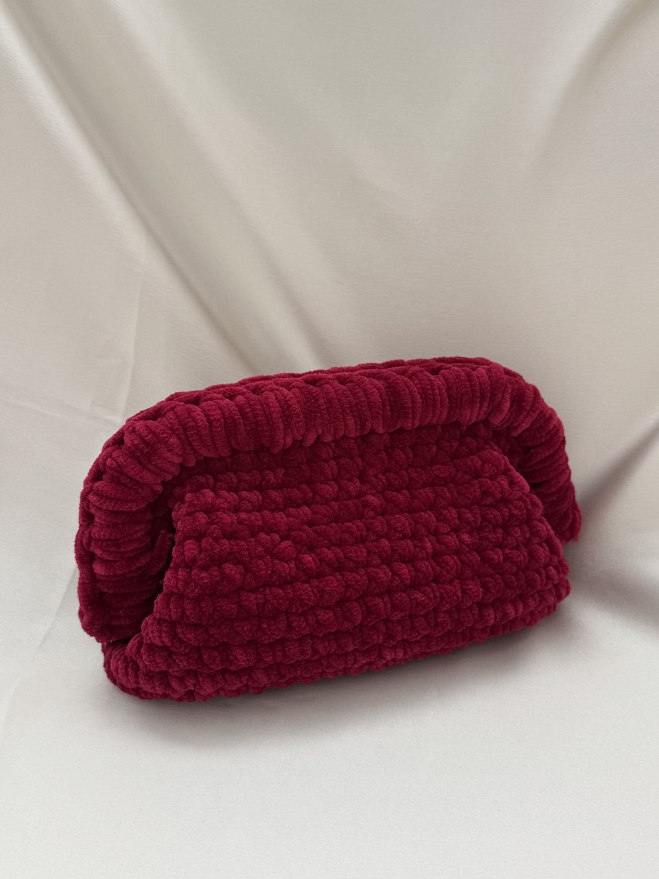 Clutch realizzata interamente a mano con filato di ciniglia.