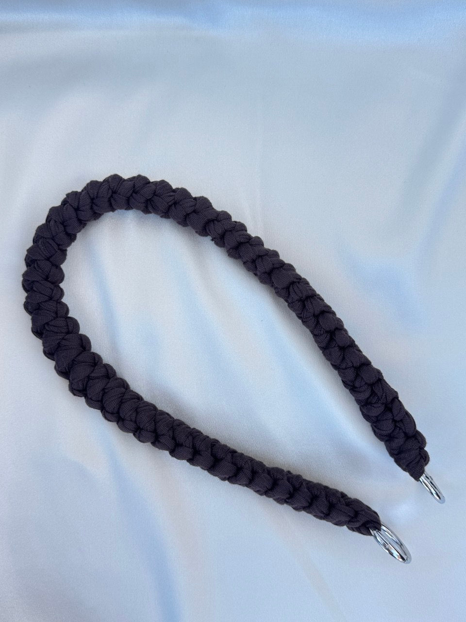 Manico "spighetta rumena" realizzato a mano con filato in lycra, colore marrone.