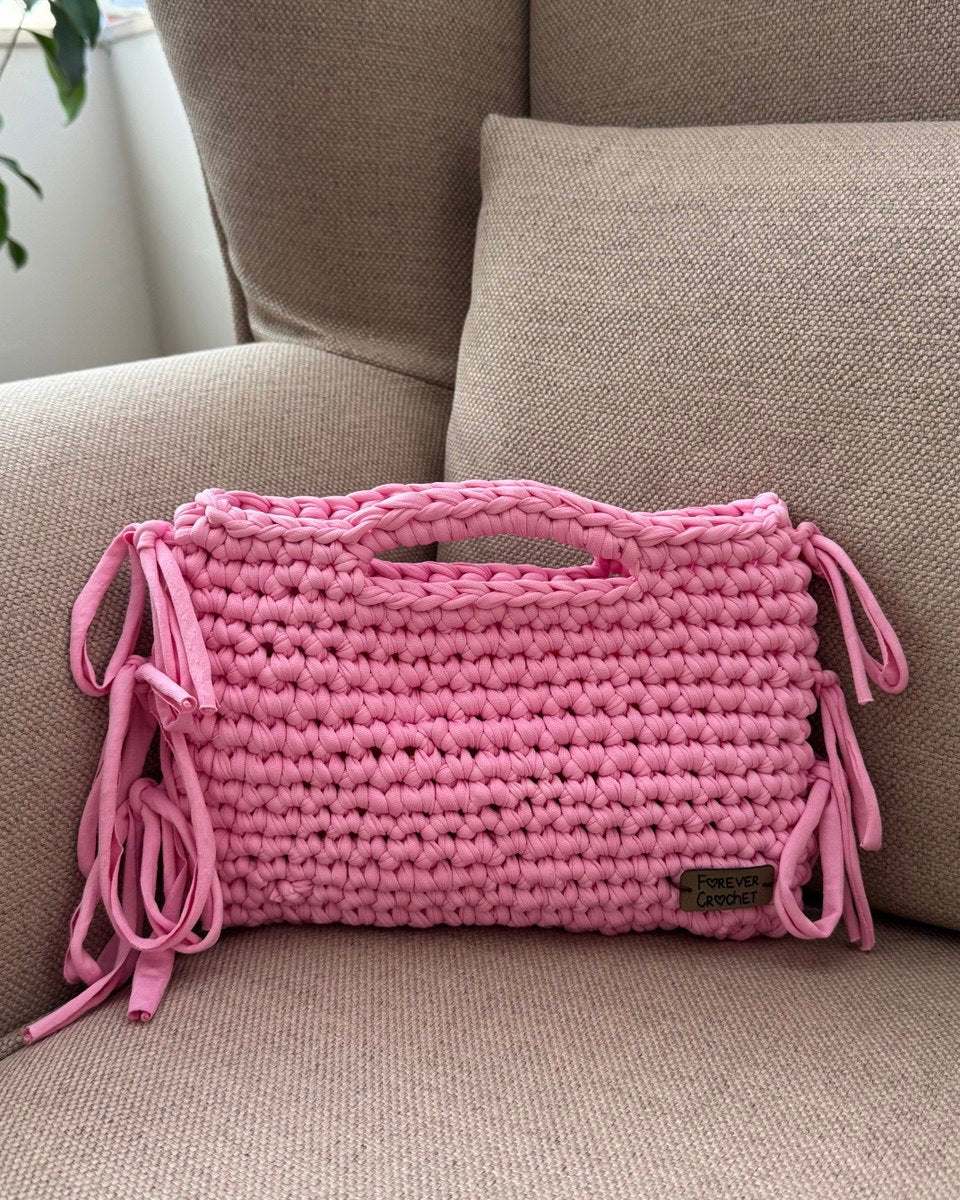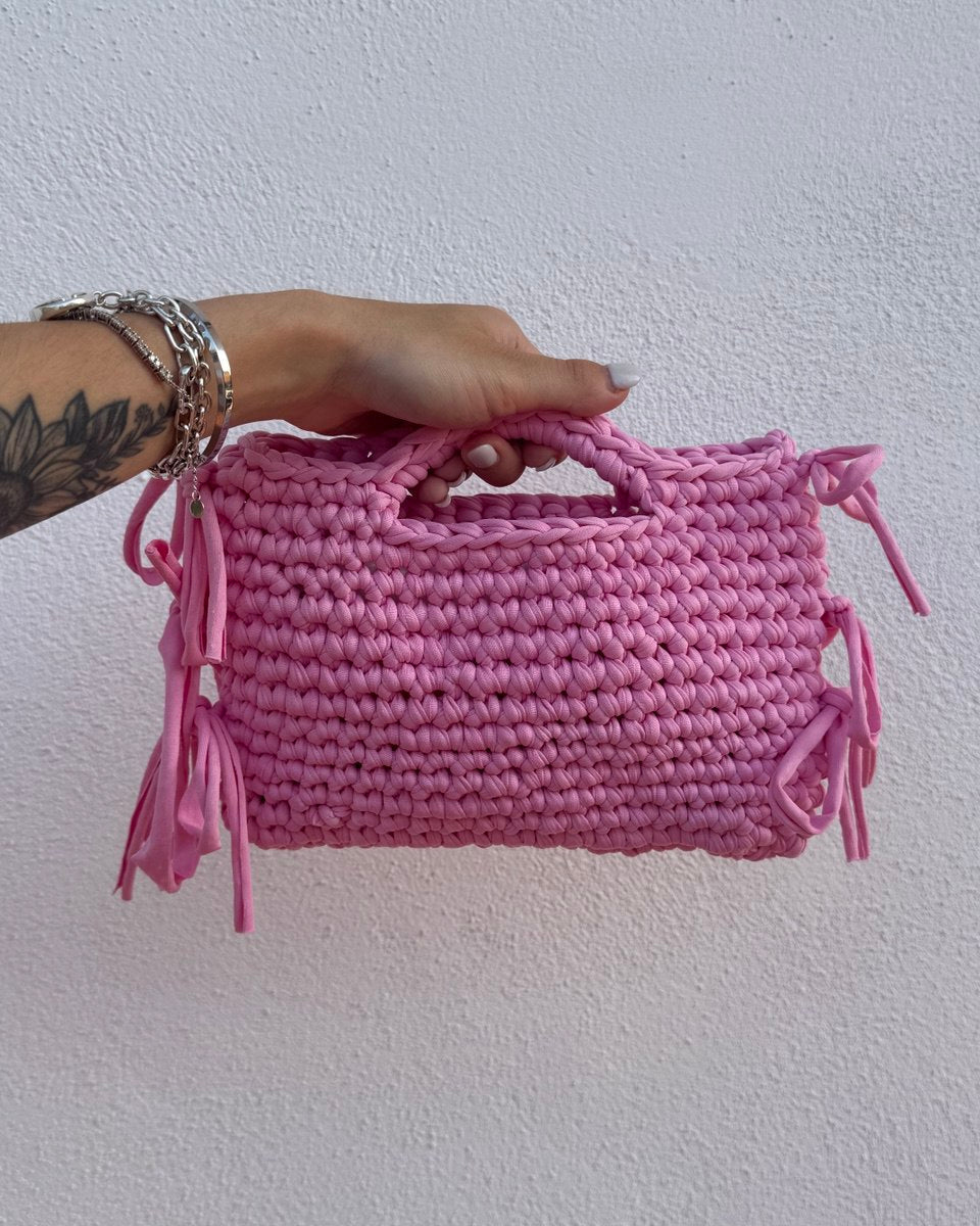 Borsa con manico realizzata interamente a mano rosa barbie