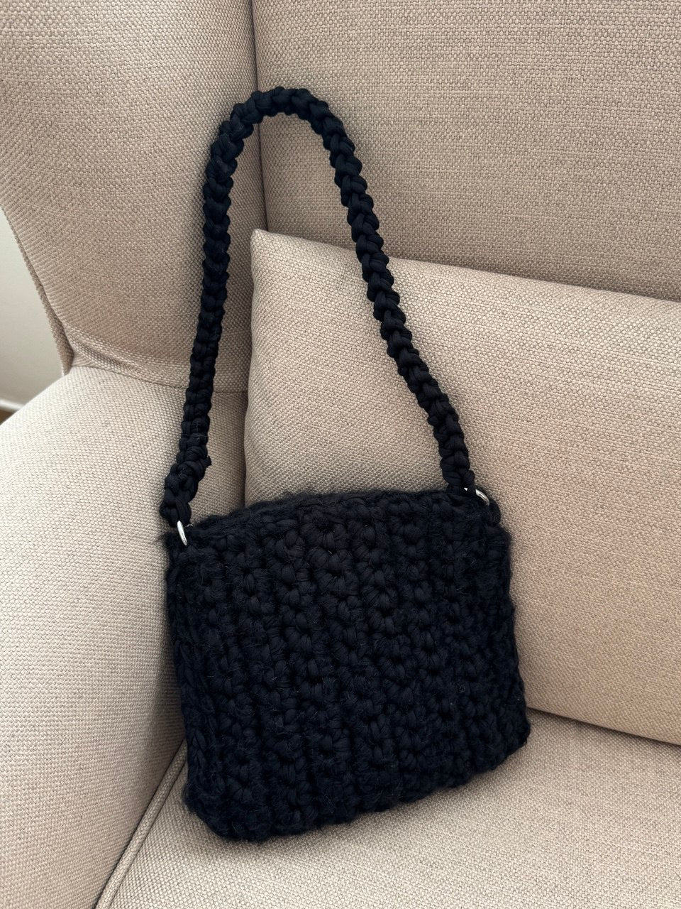 Borsa a spalla realizzata interamente a mano con filato in cotone e filato in lana