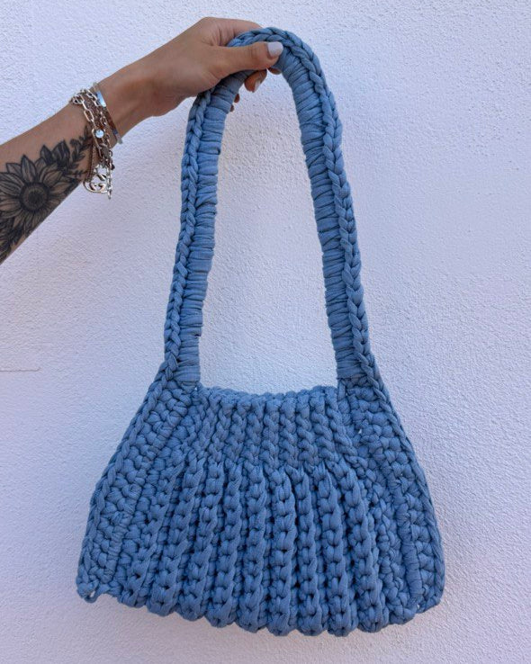 Borsa a spalla realizzata interamente a mano celeste